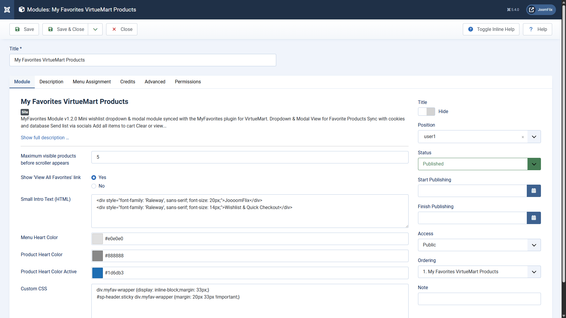 Documentation for MyFavorites Suite. The ultimate Shortlist & Favorites system for Joomla 5 - 6 & VirtueMart 4+.
